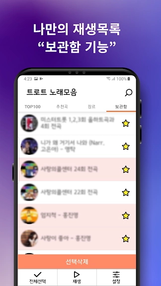 트로트 노래모음은 이어듣기, 연속재생 등 어떠한 상황에서도 고음질의 트로트를 들을 수 있도록 다양한 기능을 지원합니다!