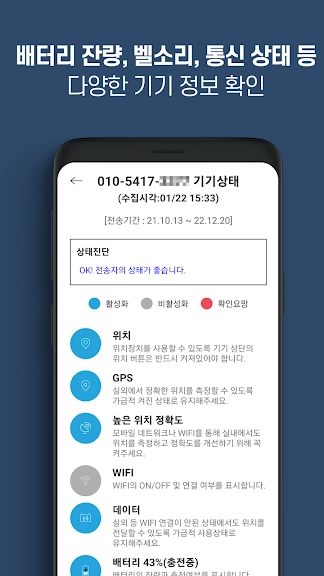 ⑩ 「기기정상체크」 : 어플 제거 여부 및 통신 상태 체크 기능