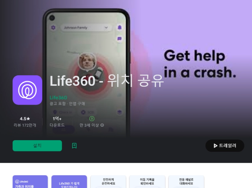이 어플은 구글플레이스토어에서 "가족 위치추적"로 검색했을때 1번째로 나오는 어플입니다. 아래는 Life360 - 위치 공유 어플에 대한 자세한 설명이니 참고하세요.