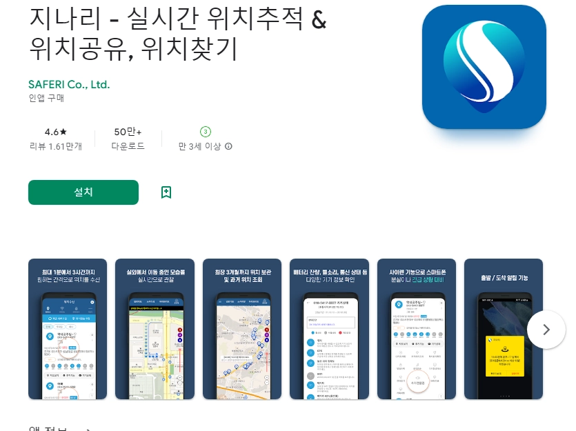 이 어플은 구글플레이스토어에서 "가족 위치추적"로 검색했을때 3번째로 나오는 어플입니다. 아래는 지나리 - 실시간 위치추적 & 위치공유, 위치찾기 어플에 대한 자세한 설명이니 참고하세요.