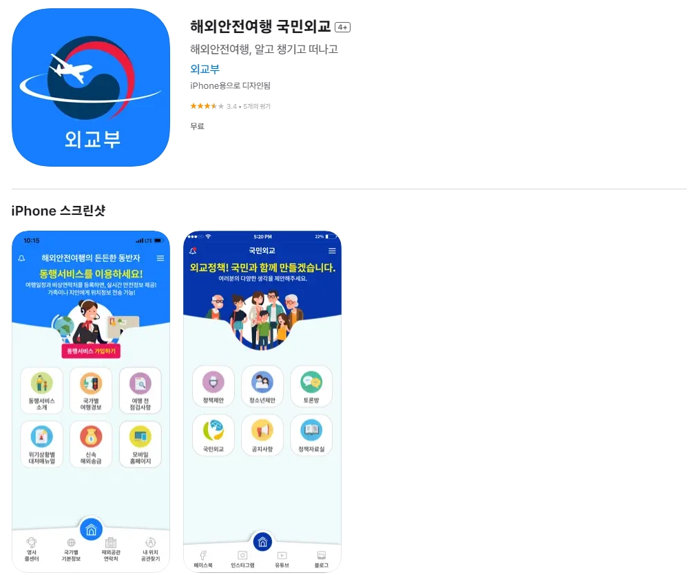 아래는 아이폰 해외안전여행 국민외교 4+ 어플 앱스토어 다운로드 링크입니다. 해외안전여행 국민외교 4+ 어플을 다운로드 하시길 원하신다면 아래 버튼을 클릭하시기 바랍니다.