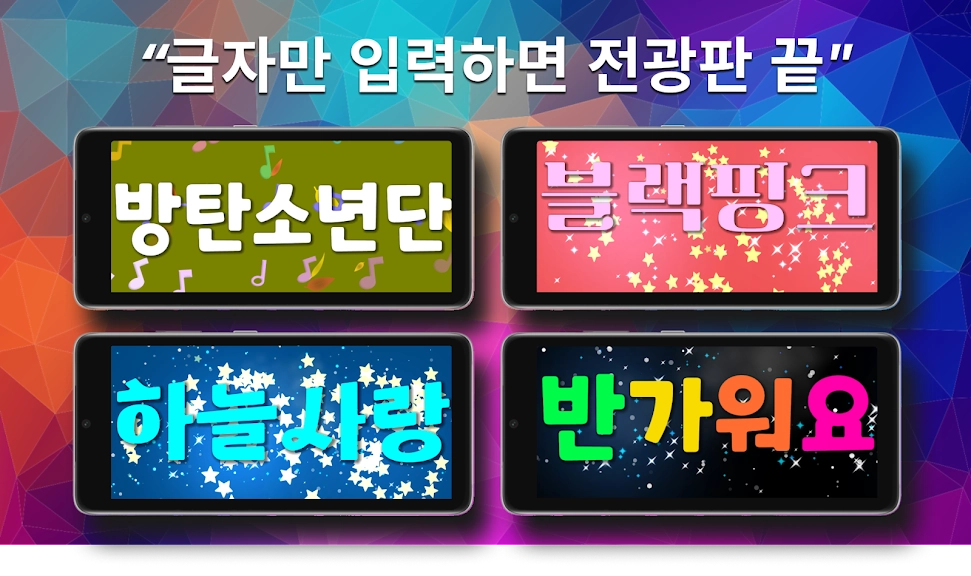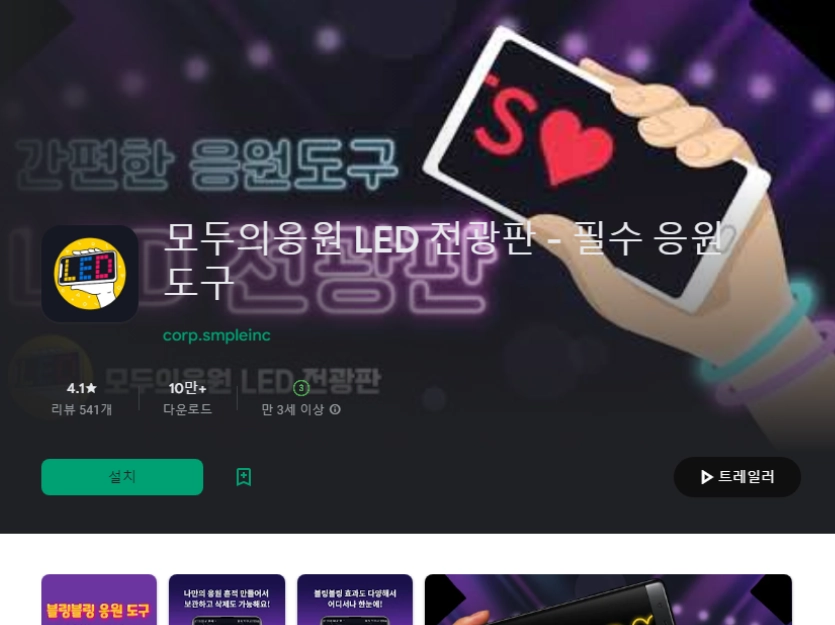 이 어플은 구글플레이스토어에서 "콘서트 응원문구 어플"로 검색했을때 3번째로 나오는 어플입니다. 아래는 전광판 플러스 LED - 관심을 사로 잡고 싶을 때 어플에 대한 자세한 설명이니 참고하세요.