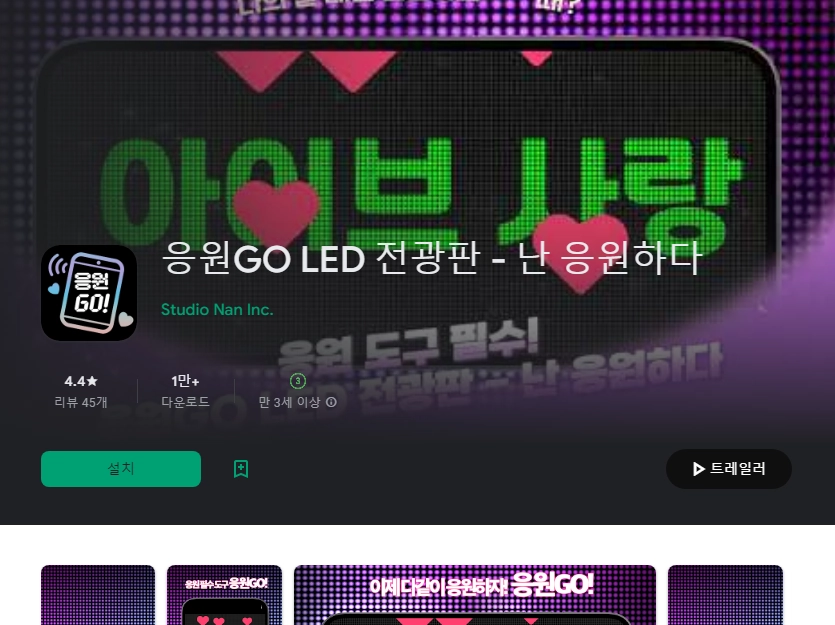 아래는 응원GO LED 전광판 - 난 응원하다 어플에 대한 스크린샷 정보입니다.