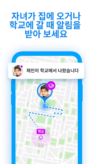 보안 관리 - 자녀가 학교 잘 도착했는지 확인하세요. 학교에 도착했을 때, 집에 돌아 왔을 때, 또 설정만 하면 추가적인 활동들에 대한 알림을 받아 안심할 수 있습니다.