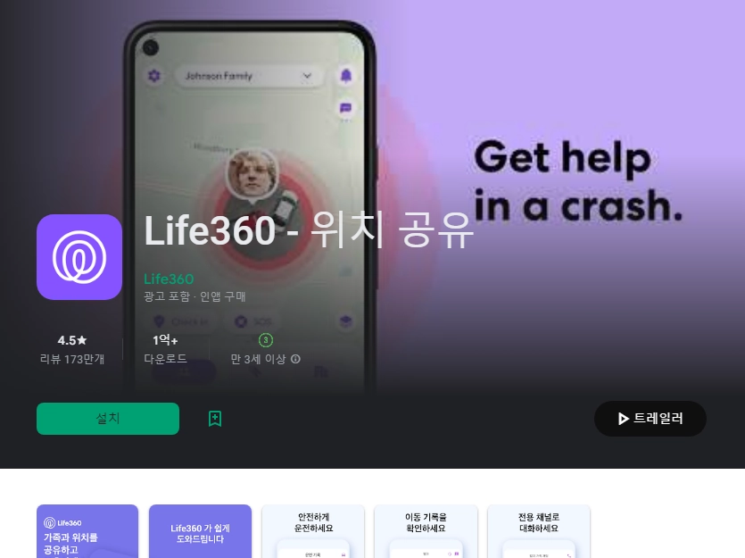 이 어플은 구글플레이스토어에서 "무료 자녀 위치추적"로 검색했을때 5번째로 나오는 어플입니다. 아래는 Life360 - 위치 공유 어플에 대한 자세한 설명이니 참고하세요.