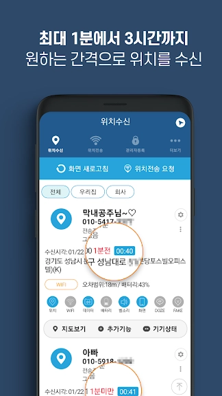 ▶ 위치추적 앱을 네 개 정도 사용해 봤지만 가장 기능이 훌륭합니다. 화면도 가장 큼직하고 사이렌 보내기나 상대 전화기 상태 보기 등의 기능이 매우 좋습니다.