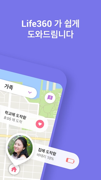 Life360을 사용하면 쉽게 연결되고, 정보를 얻고, 안전하게 지낼 수 있습니다. 오늘 등록해서 소중한 사람들의 안전을 확인하세요.