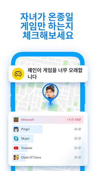 앱 관리 - 자녀가 어떤 앱을 사용했는지, 무슨 앱이 자녀를 방해하는지 확인해 보세요.