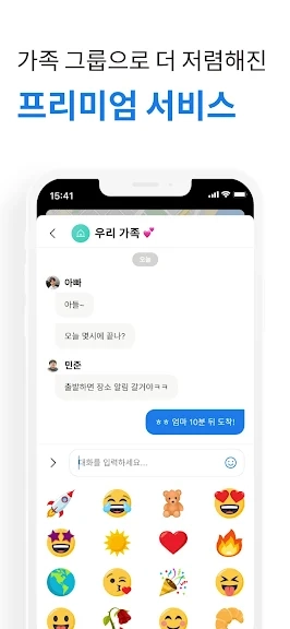 가족 채팅 - 아이들에게 스티커를 보내서 칭찬해준다면 떨어져 있어도 아이가 행복해 할 거예요!
