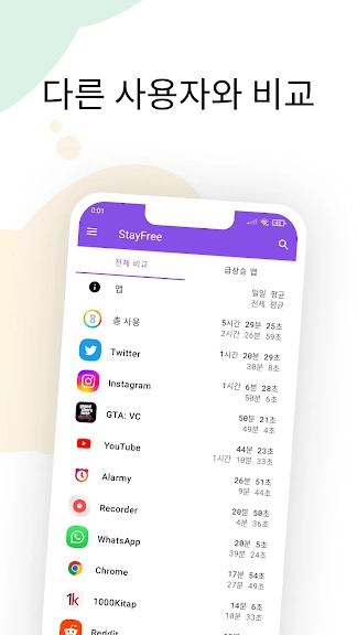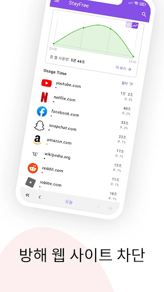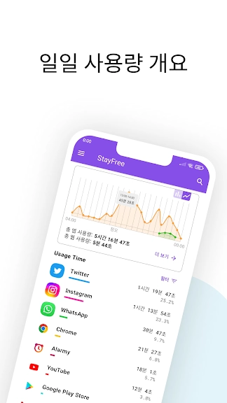 핸드폰 사용시간 - 스테이프리 (StayFree) 어플에 대한 스크린샷 정보가 필요하시다면 아래 이미지를 참고하시기 바랍니다.