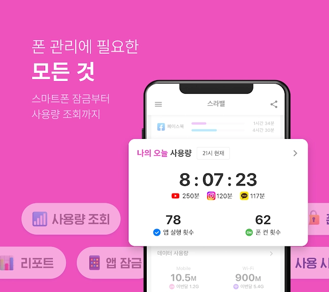 스마트폰 사용관리에 필요한 모든 기능을 제공합니다. ٩( ᐛ )۶