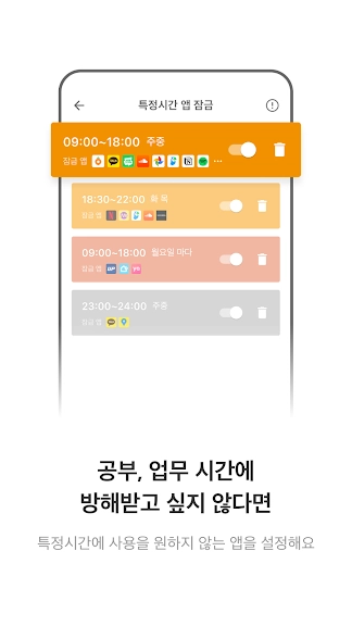 ★ 수면 모드: 앱을 비활성화할 수면 시간을 예약하세요.