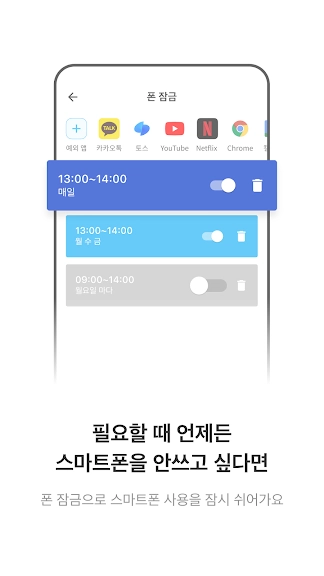 스마트폰 사용이 많다고 느끼면서도 의지가 부족해 조절이 안 되시는 분들은 꼭 필요한 앱입니다.