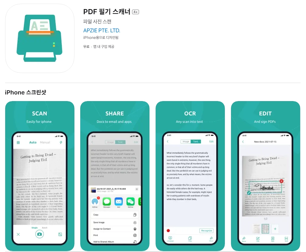 아래는 아이폰 PDF 필기 스캐너 4+ 어플에 대한 자세한 설명입니다. 참고하세요.