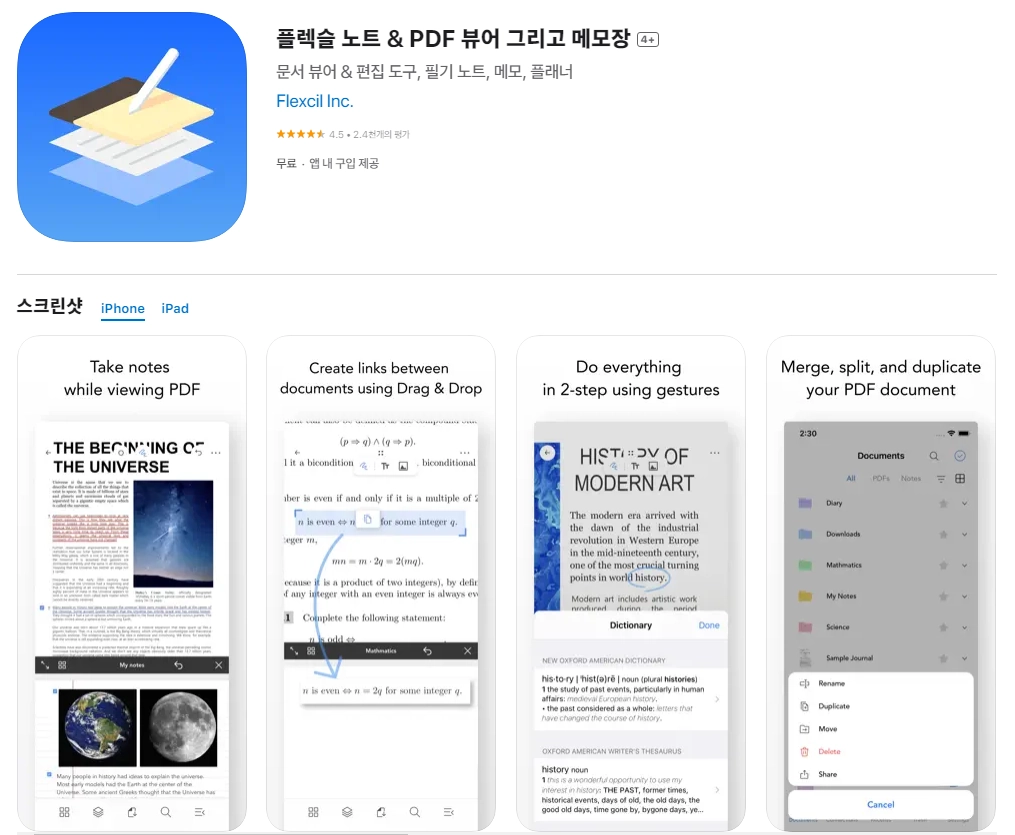 아래는 아이폰 플렉슬 노트 & PDF 뷰어 그리고 메모장 4+ 어플에 대한 자세한 설명입니다. 참고하세요.