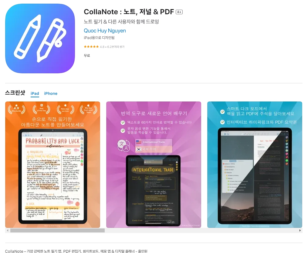 1. 아이폰 CollaNote : 노트, 저널 & PDF 4+ 앱
