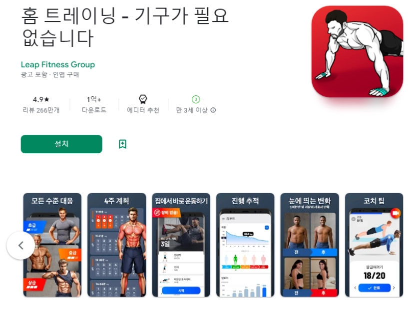 3) 홈 트레이닝 - 기구가 필요 없습니다 어플 베스트 리뷰