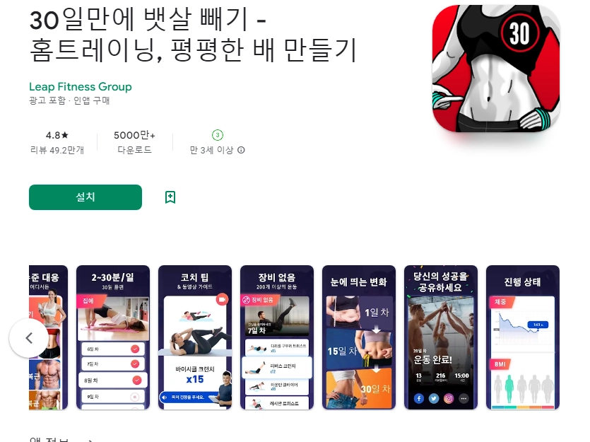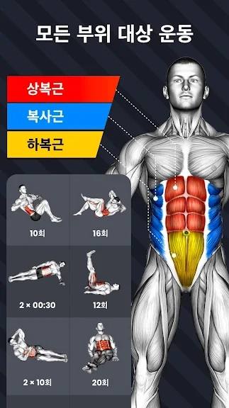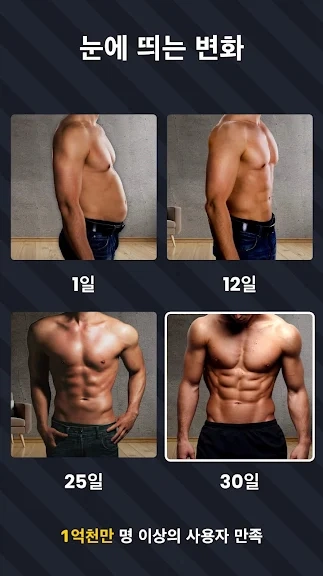 아래는 복근 운동 매일 뱃살- 30일만에 식스팩 만들기 어플에 대한 스크린샷 정보입니다.