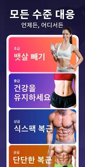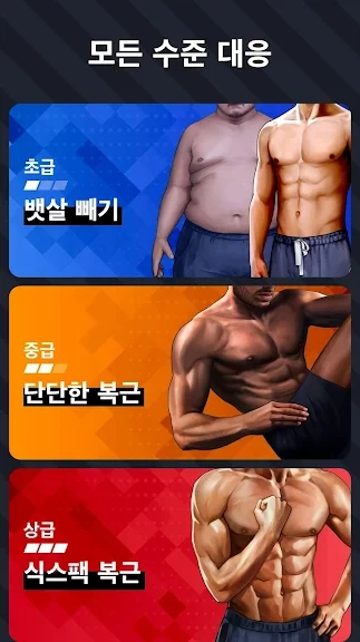 뱃살을 빼고 단단한 배, 식스 팩 복근을 만드세요 - 이 3가지 레벨의 운동 계획이 단계적으로 뱃살을 빼고 복근을 만들 수 있게 도와줍니다. 초보와 프로 모두 자신에 맞는 운동을 찾을 수 있습니다. 매일 다른 운동이 준비되어 있어 항상 신선하고 흥미롭습니다.