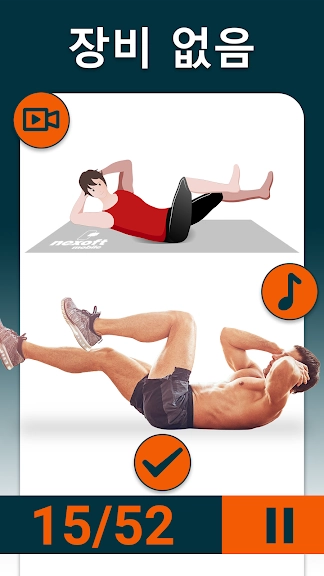 -전문가가 설계한 3가지 난이도(쉬움, 중간, 어려움)에 기반한 복근 운동.