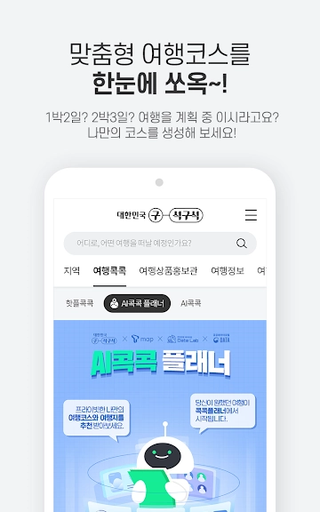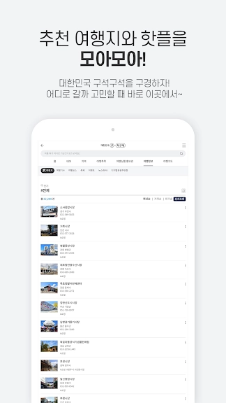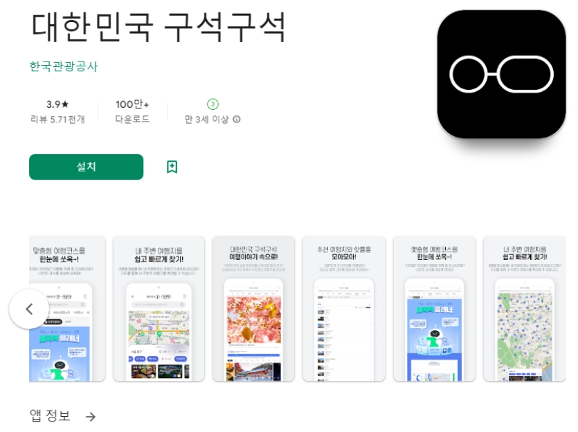 아래는 대한민국 구석구석 어플에 대한 스크린샷 정보입니다.