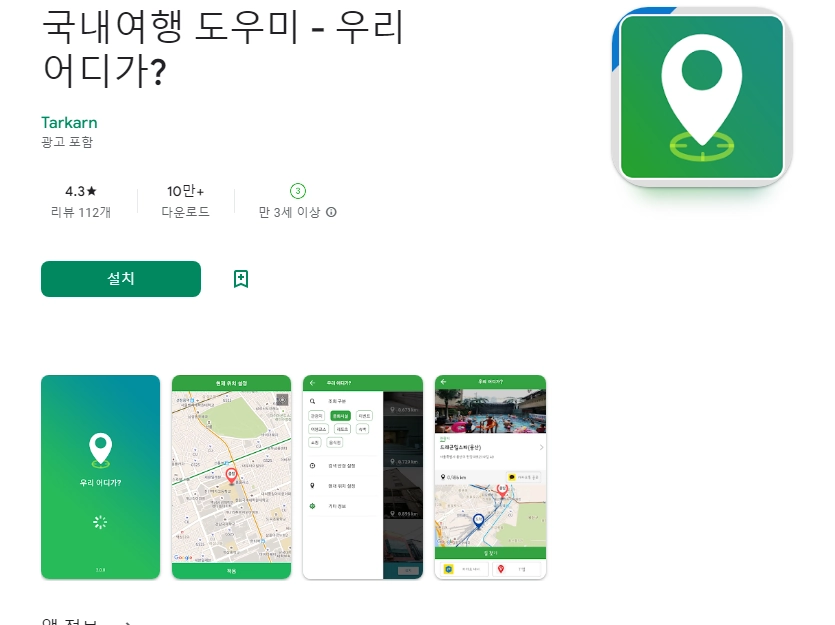 이 어플은 구글플레이스토어에서 "국내 여행지 추천"로 검색했을때 2번째로 나오는 어플입니다. 아래는 국내여행 도우미 - 우리 어디가? 어플에 대한 자세한 설명이니 참고하세요.