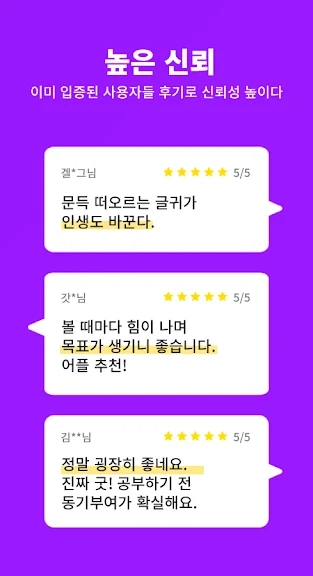 ▶ 폰을 열때마다 자극되는 문구때문에 그때 그때 기분을 꽉 잡아주네요 쓰다가 알림 설정 지울거 같았는데 은근 어떤 명언이 나올지 기대되는 느낌? 잘 쓰고 있습니다~~ 정중히 리뷰 남깁니다 :D