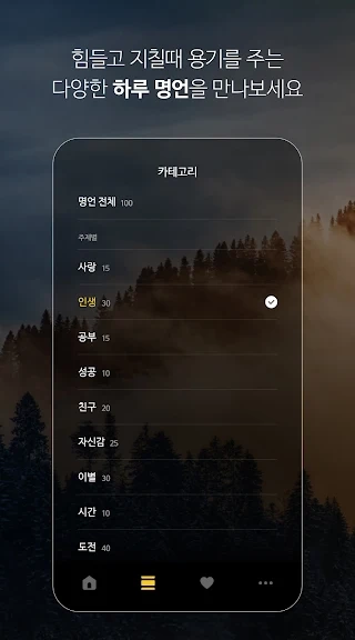 - 카테고리 별로 구분된 명언을 선택하여 보실 수 있습니다.
