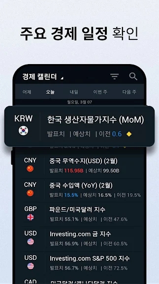 사용자의 관심사에 맞춰진 글로벌 경제 이벤트에 대한 라이브 업데이트.