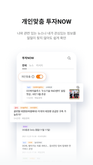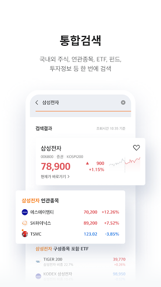 -내가 원하는 국내/해외주식과 상품, 투자정보를 하나의 키워드로 통합 검색하고, 내가 관심있는 뉴스나 리서치, 금융정보를 일일이 찾지 않아도 통합 피드에서 모아볼 수 있습니다.