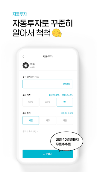 - 자동투자 주문금액 월 40만원까지 수수료 무료 (~2022.12.31 까지)