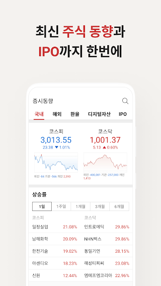 • 상승 또는 하락 순위 뿐만 아니라 주가 변동도 한눈에 확인