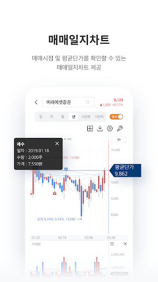 아래는 미래에셋증권 M-STOCK 어플에 대한 스크린샷 정보입니다.