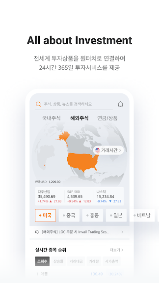 -국내주식은 물론 해외주식, 연금, 금융상품 등 전 세계 투자상품을 원터치로 접근하고 24시간 트레이딩 할 수 있는 금융투자 플랫폼을 제공합니다.
