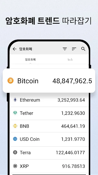 • 원화 또는 달러로 쉽게 알 수 있는 실시간 시세