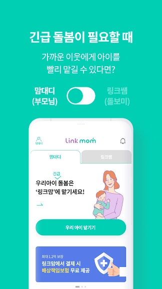 2) 링크맘 - 등하원도우미, 돌봄, 베이비시터, 육아 어플 다운로드 / 스크린샷