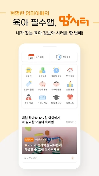- 엄마시터 : 자녀를 키워 육아 경험이 풍부한 맘좋은 어머니