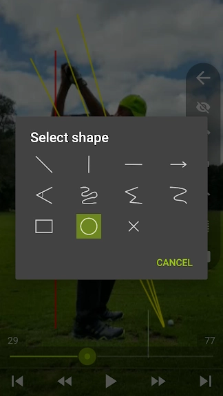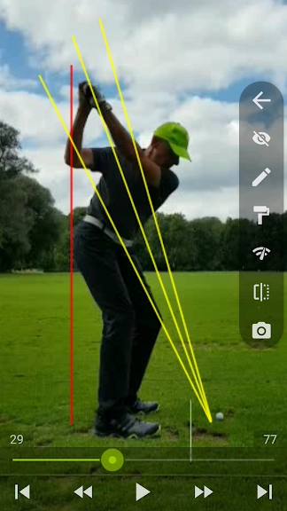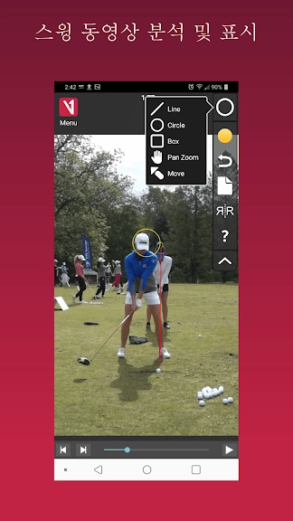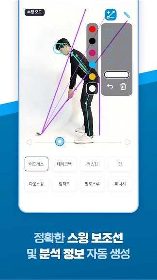 - 다양한 그리기 툴을 통해서, 스윙자세교정, 헤드업방지, 헤드의 움직음 등을 자유롭게 분석할 수 있습니다.