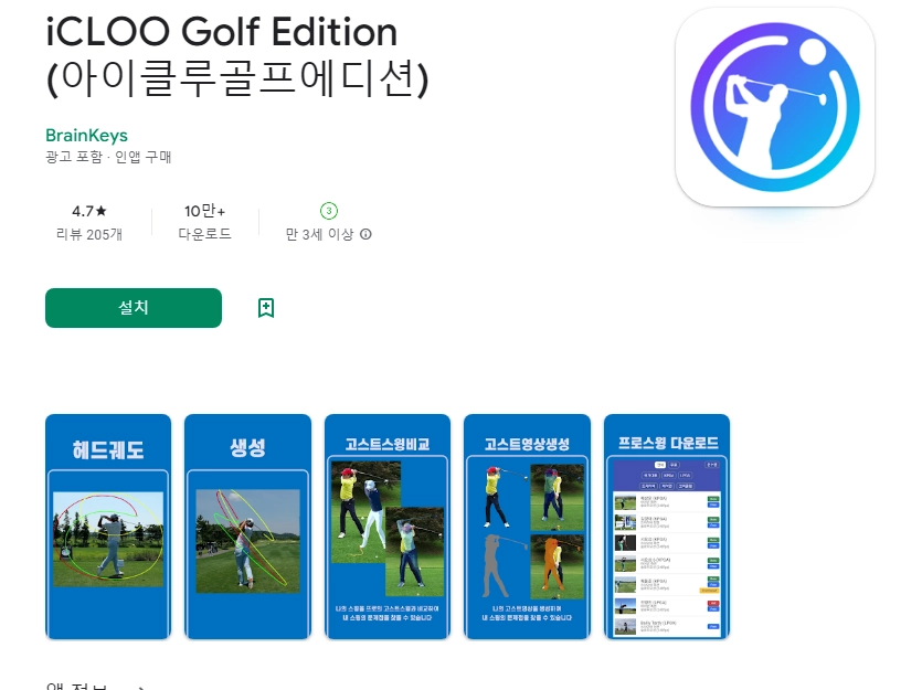 이 어플은 구글플레이스토어에서 "골프 스윙 분석"로 검색했을때 2번째로 나오는 어플입니다. 아래는 iCLOO Golf Edition (아이클루골프에디션) 어플에 대한 자세한 설명이니 참고하세요.