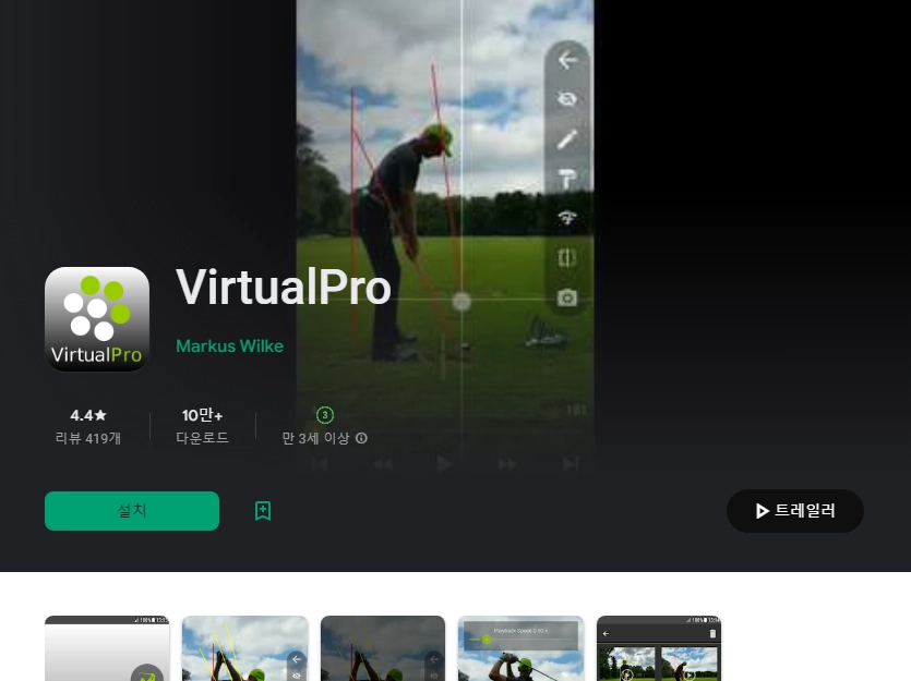 이 어플은 구글플레이스토어에서 "골프 스윙 분석"로 검색했을때 5번째로 나오는 어플입니다. 아래는 VirtualPro 어플에 대한 자세한 설명이니 참고하세요.