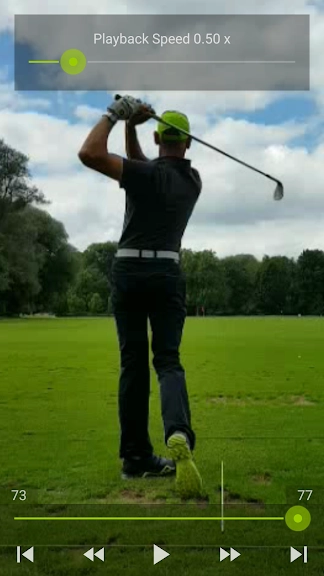 - 우측 하단의 조그 다이얼을 앞으로 뒤로 돌리면 모든 스윙장면을 빠짐없이 앞으로 뒤로 돌려가면서 스윙 동작의 세밀함 면까지 쉽게 분석이 가능합니다.