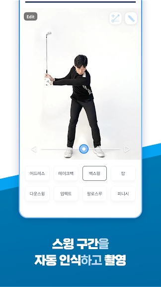 - 카메라 앞에서 자유롭게 스윙해 보세요. 자동으로 어드레스부터 피니시까지 찾아 드립니다.