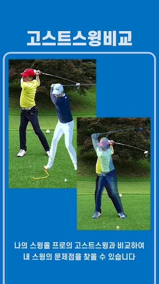 - 프로의 스윙과 나의 스윙 비교, 정면과 측면스윙 비교, 베스트 스윙과 현재스윙비교 등 스윙비교를 통한 분석이 가능합니다.