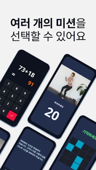 ■ 멀티플 미션 - 2, 3개의 미션을 완료하고 더 확실하게 일어나세요! (예 : 수학문제 풀기 미션 - 따라쓰기 미션 - 스쿼트 미션)