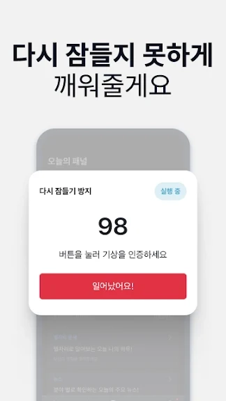 ■ 다시 잠들기 방지 - ‘다시 잠들기 방지 기능’은 여러분이 완전히 깨어 있는지 끝까지 확인해 줍니다.