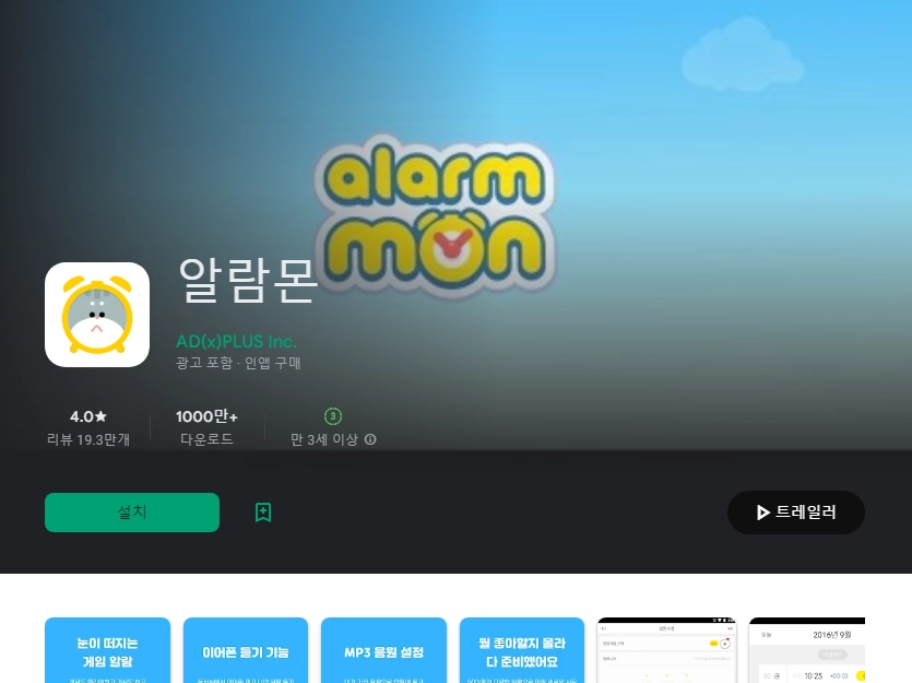 아래는 알람몬 어플에 대한 스크린샷 정보입니다.