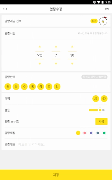 ▶ 알람이 시스템이 너무 다양하고 옵션도 다양하게 비일번호 퍼즐등 재미있게 아침을 시작할수있어 너무나도 좋아용^-^