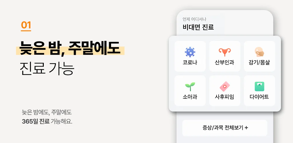 ▶ 평일에 병원가기가 근무 시간 때문에 어려운데 비대면으로 진료받고 약도 바로 구매 가능해서 너무 편합니다. 앱도 보기 쉽고 직관적이라 좋습니다.