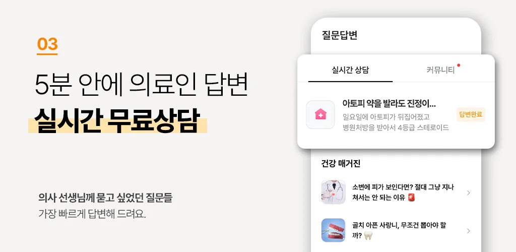 ▶ 거리 상관없이 바로 진료받을 수 있어서 좋았습니다. 코로나때문에 사람 많아져서 처음보다 진료받기 어려워지긴 했는데 저는 좋았어요. 코로나 잠잠해지면 더 편하게 쓸수있을듯