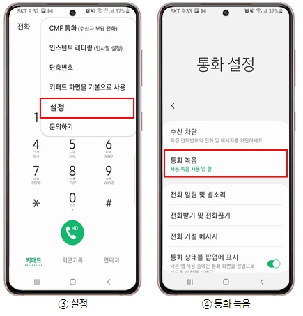 2. 갤럭시 핸드폰 통화 중 녹음 사용 방법